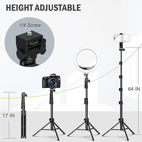 • 【Multi-angle Shot】: With a max height of 64”, this tripod stand with a 210-degree rotation head and 360-degree rotation holder allows you to capture shots from any angle, catering to different photography needs.